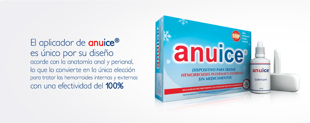 El diseño anatómico del aplicador de anuice® permite que se ajuste a las diferentes formas del área afectada; así, el dispositivo puede ser usado en el tratamiento para hemorroides internas como de hemorroides externas.